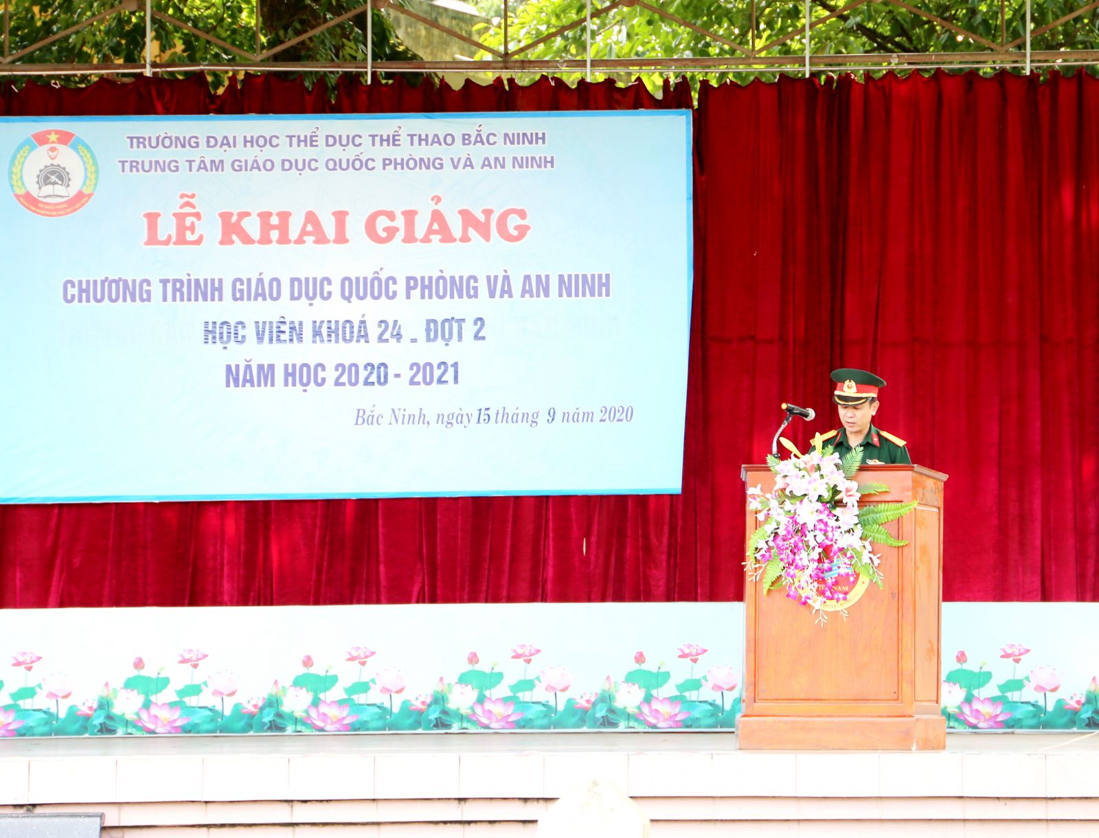 Sáng ngày 15/9/2020, tại Trung tâm Giáo dục Quốc phòng và An ninh – Đại học Thể dục Thể Thao Bắc Ninh, đã diễn ra Lễ Khai giảng chương trình giáo dục quốc phòng và an ninh cho học viên Khóa 24 đợt 2 năm học 2020-2021.